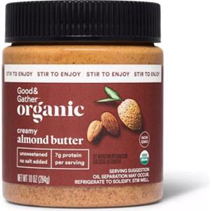 Good & Gather Organic Creamy Almond Butter is free of non-keto ingredients like sugar, artificial sweetener, and refined oils, but it is high in carbs.