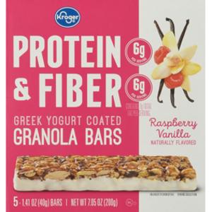 Kroger Raspberry Vanilla Protein & Fiber Granola Bars should be avoided on keto because it is very high in net carbs (42.5g of net carbs per 100g serving).