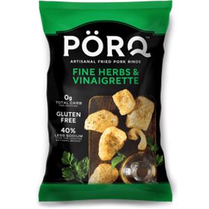 PORQ Fine Herbs & Vinaigrette Artisanal Fried Pork Rinds is low in net carbs but it should still be avoided on keto because it contains unhealthy ingredients like sugar, safflower oil, and modified starch.
