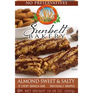 Sunbelt Bakery Almond Sweet & Salty Granola Bar should be avoided on keto because it is very high in net carbs (60g of net carbs per 100g serving).