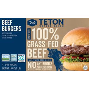 Teton Waters Ranch Grass-Fed Beef Burgers is made with grass-fed beef, which means it has higher Omega-3 and Conjugated Linoleic Acids (CLA) compared to grain-fed brands.