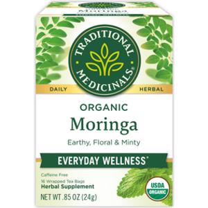 Traditional Medicinals Organic Moringa Tea is made with organic ingredients, which means it is non-GMO and free of artificial preservatives, flavors, and colors.
